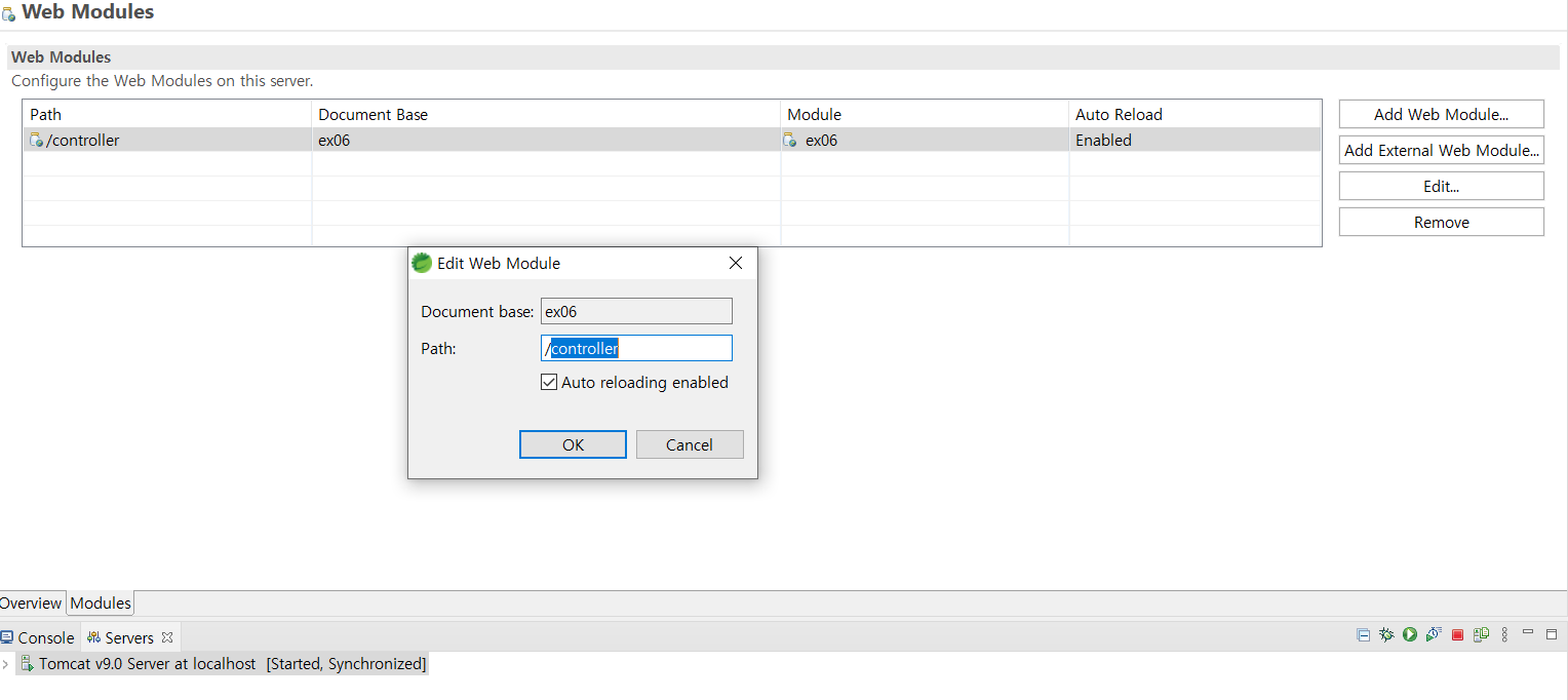 Server-Modules에서 기본주소를 mybatis라고 설정했기 때문