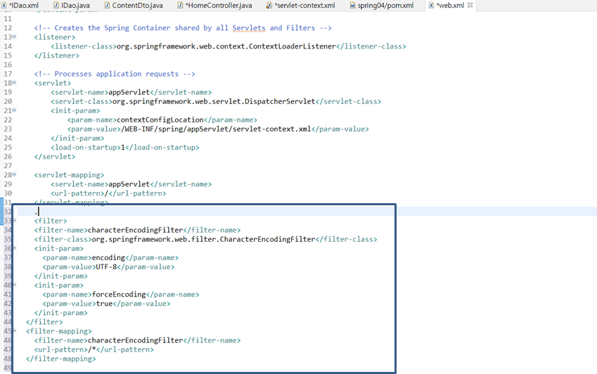 3. web.xml에서 한글 인코딩 filter추가