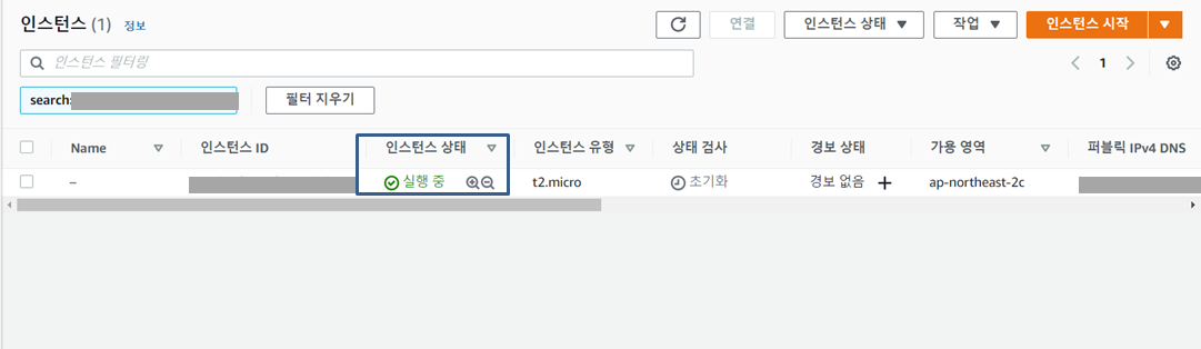 실행중이면 인스턴스 창에서 이렇게 뜬다.~! 생성 완료!