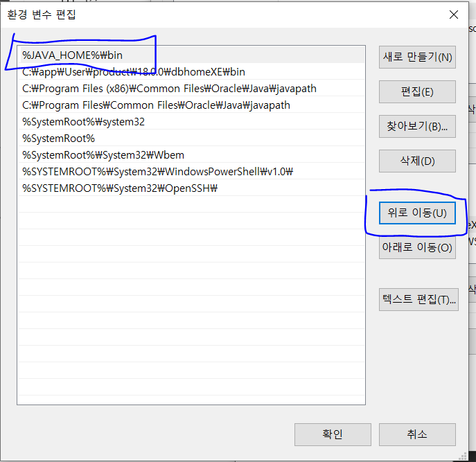 윈도우 - 설정 - 검색 - 환경 변수 검색 (환경V변수)