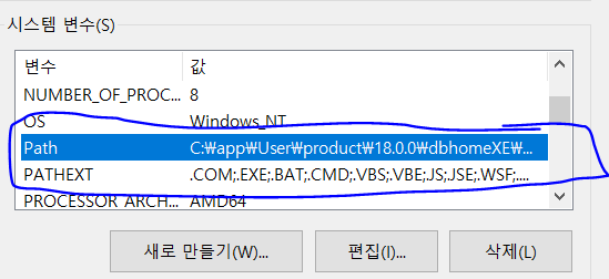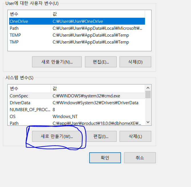 3. 시스템변수 칸 아래 새로 만들기 클릭