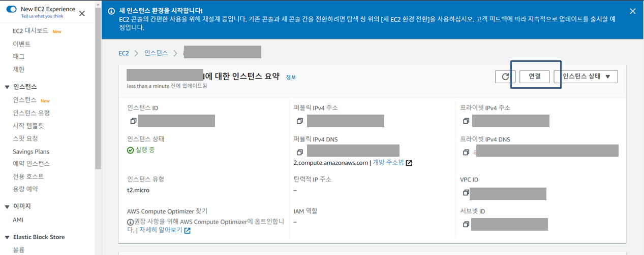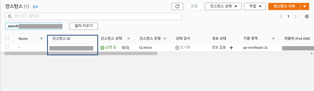 전단계의 인스턴스 생성 후 인스턴스 ID를 클릭한다.