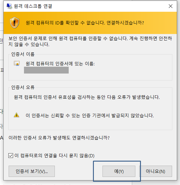 이와 같은 원격 창이 뜬다. 캡처에는 안 나와있는데 중앙 상단에 나가기나 창크기 조절이 있다.