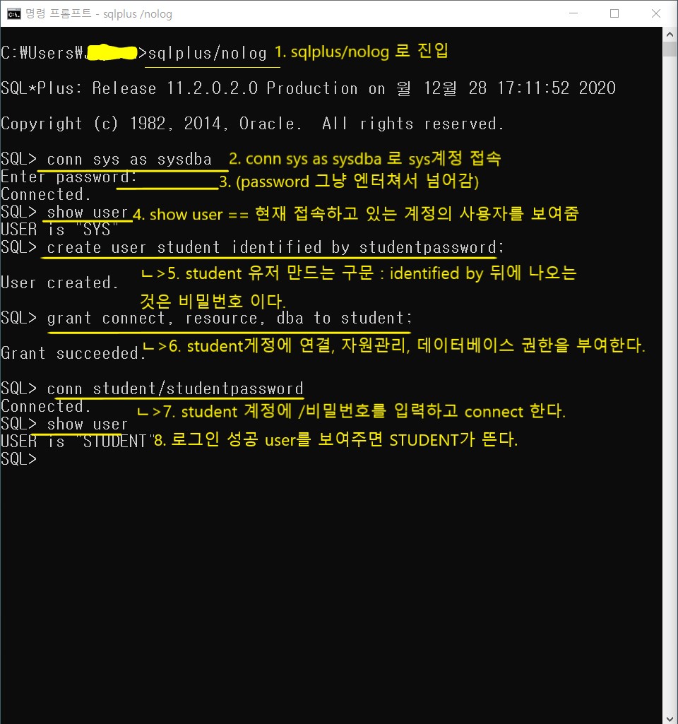 // 해결 --> student 앞에 c##를 붙여서 c##student 라고 하면 됨